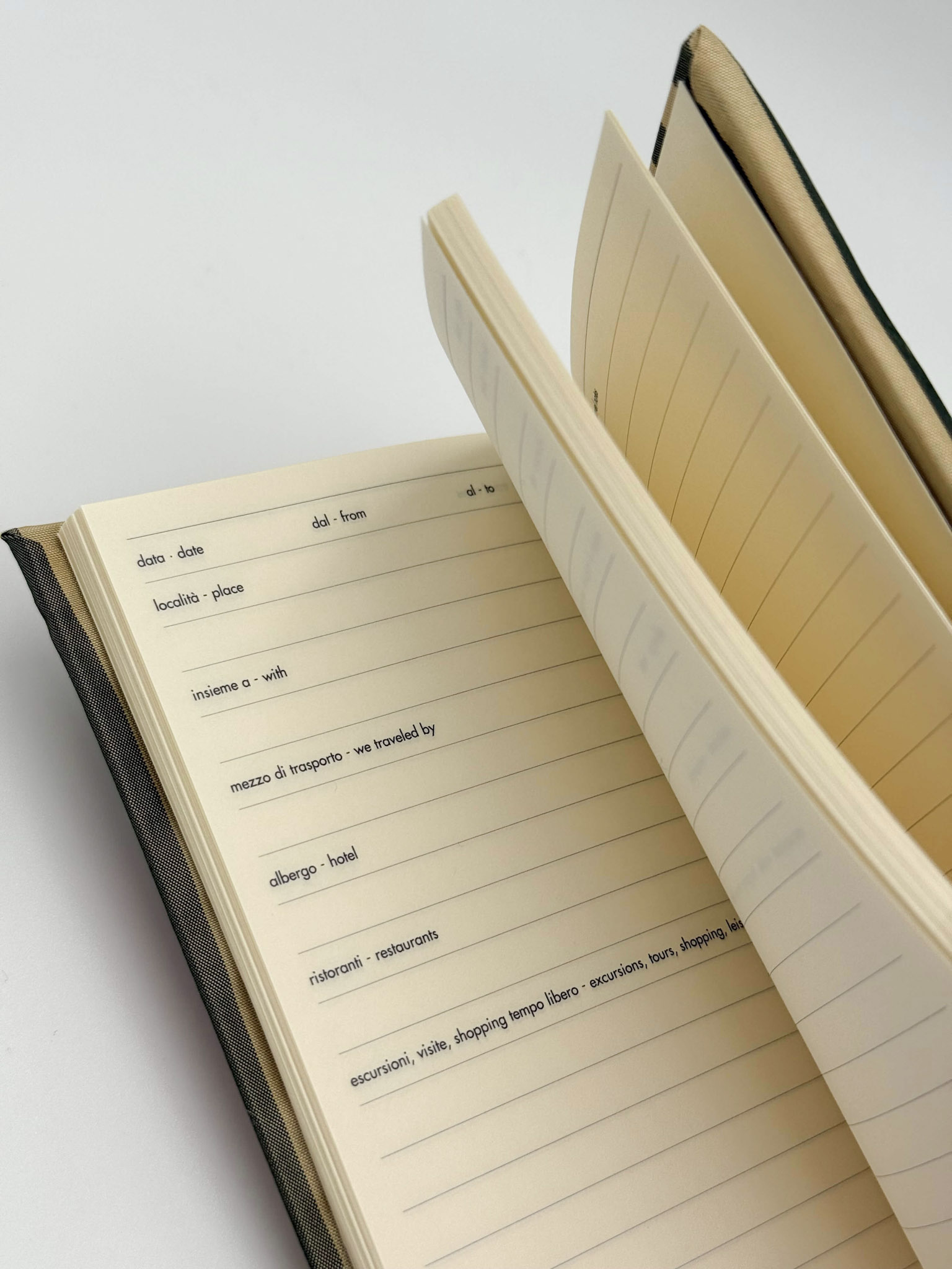 Diario di viaggio Bilingue italiano/inglese da compilare, rilegato a mano