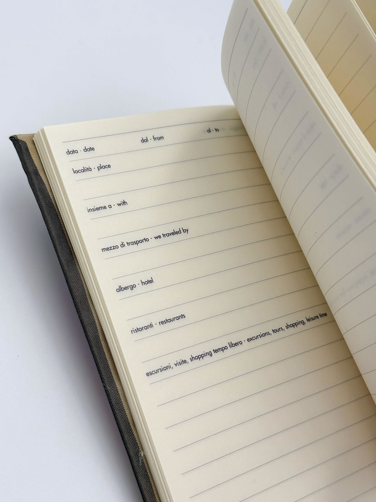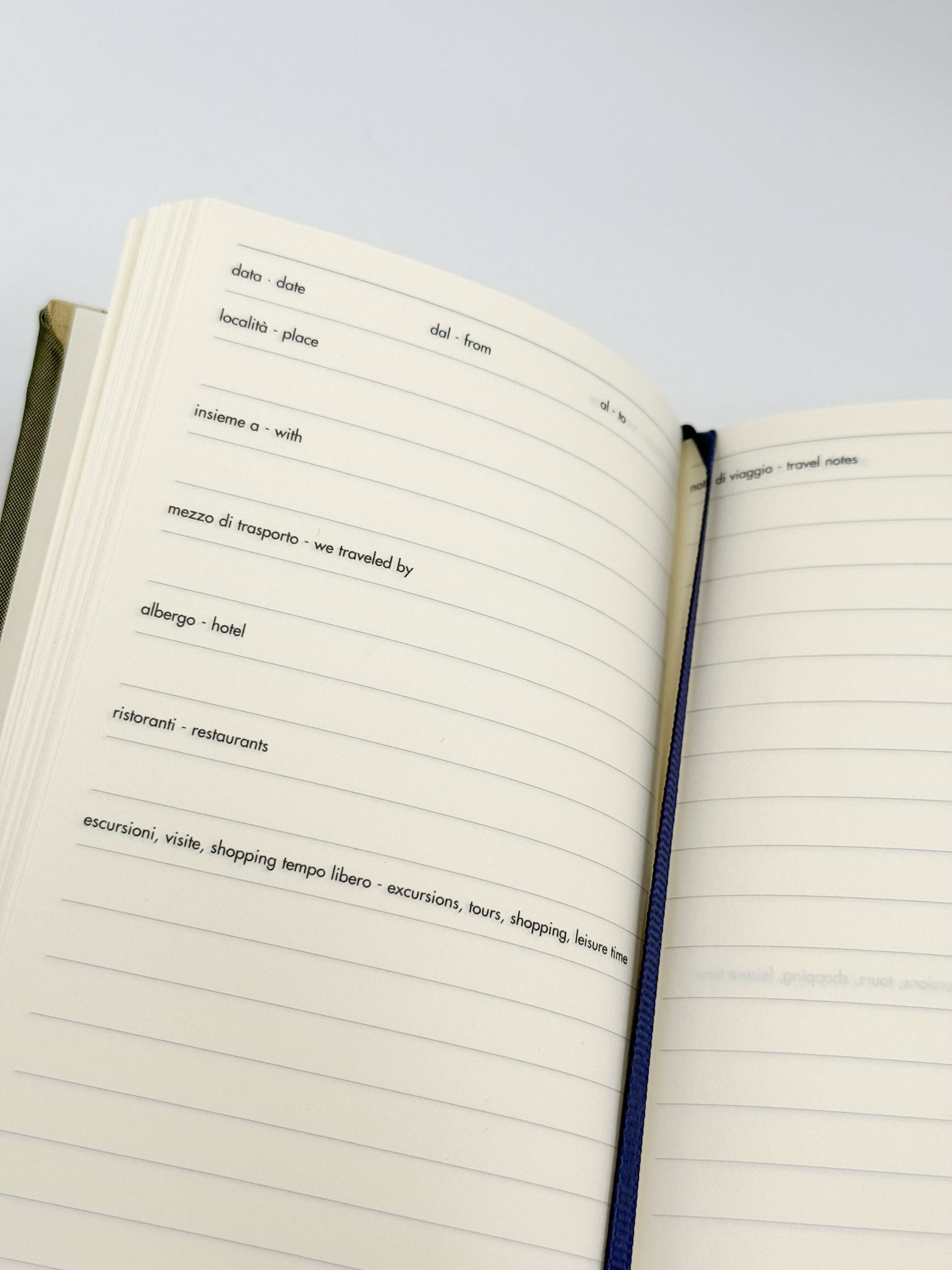 Diario di viaggio Bilingue italiano/inglese da compilare, rilegato a mano