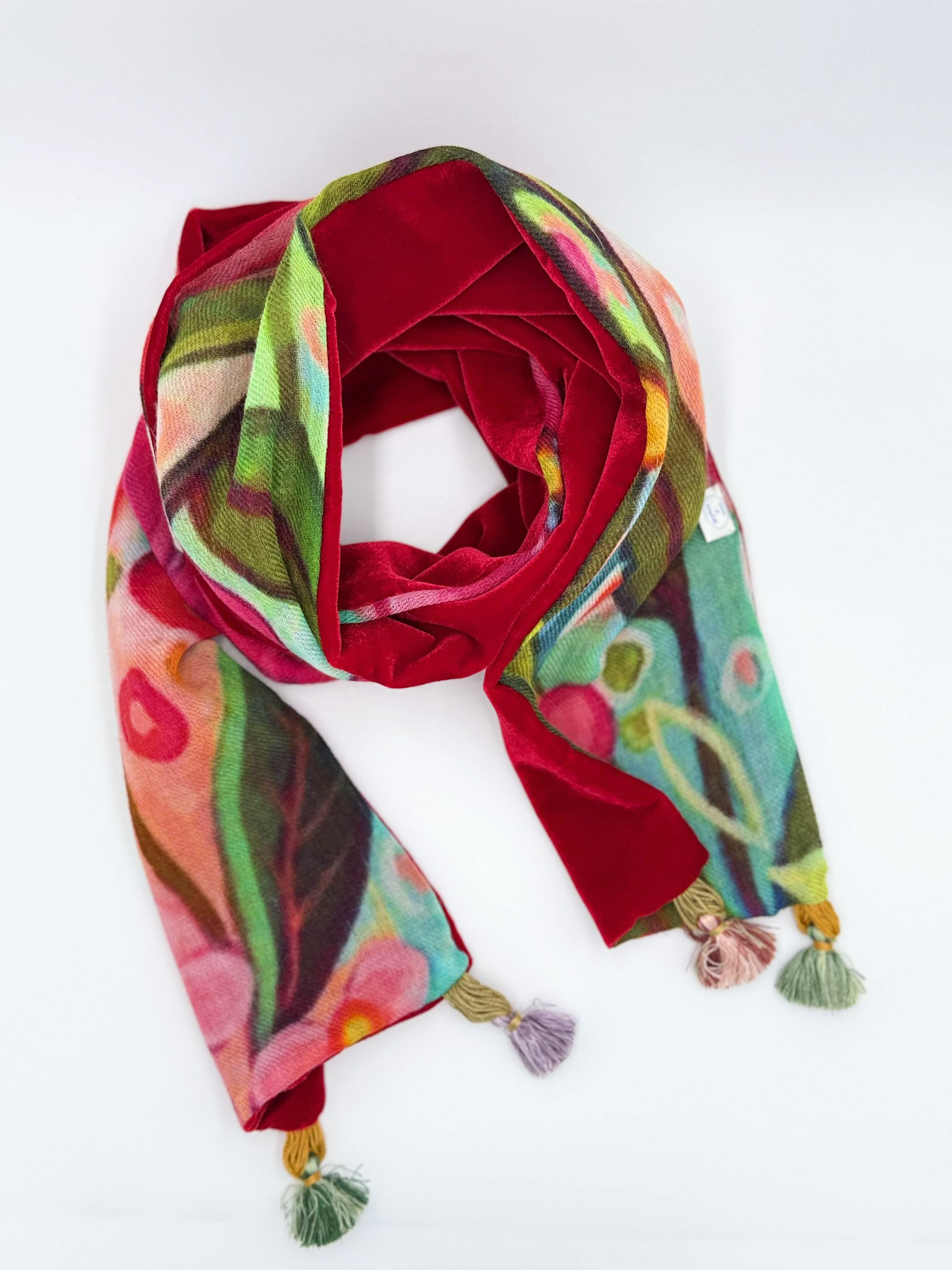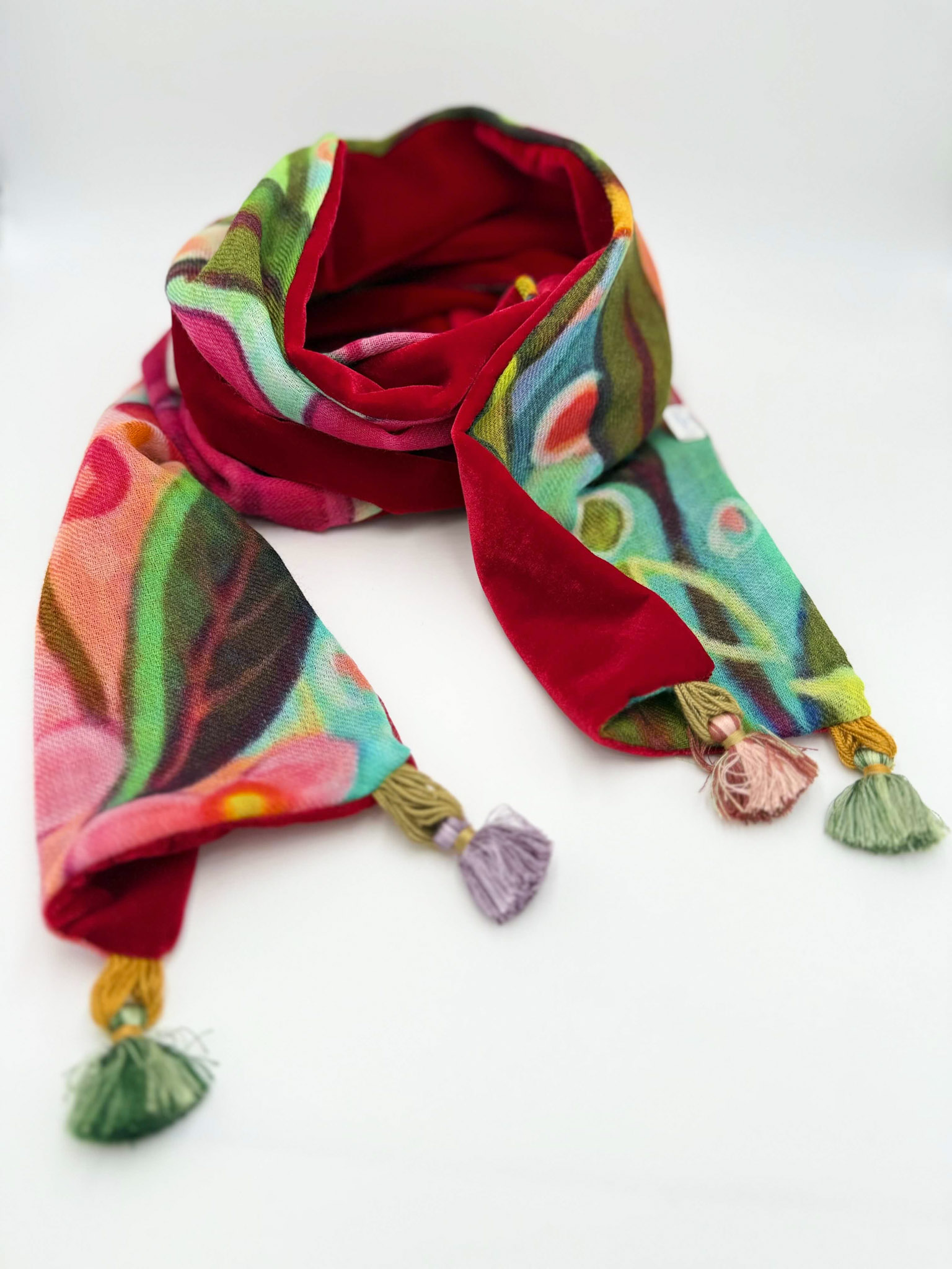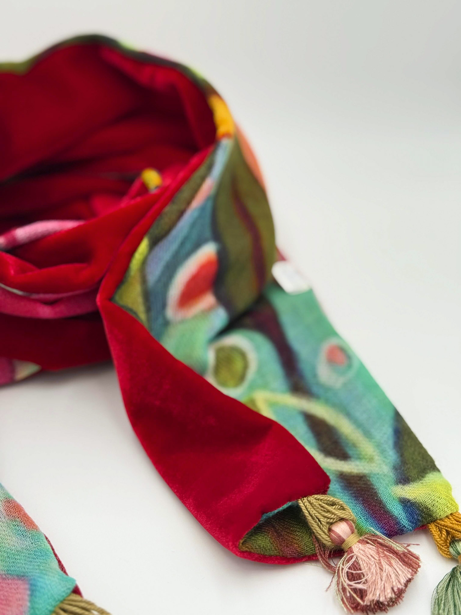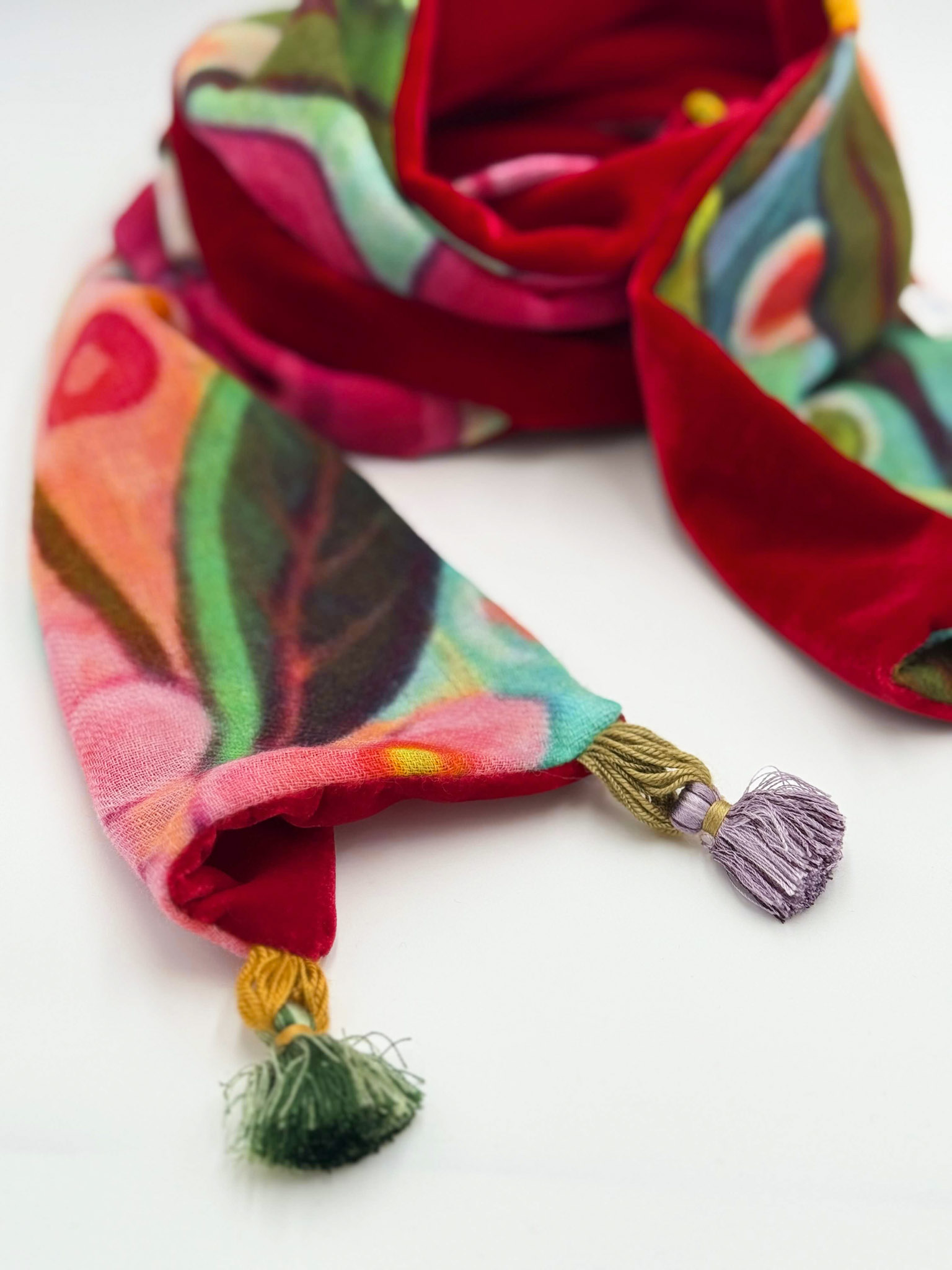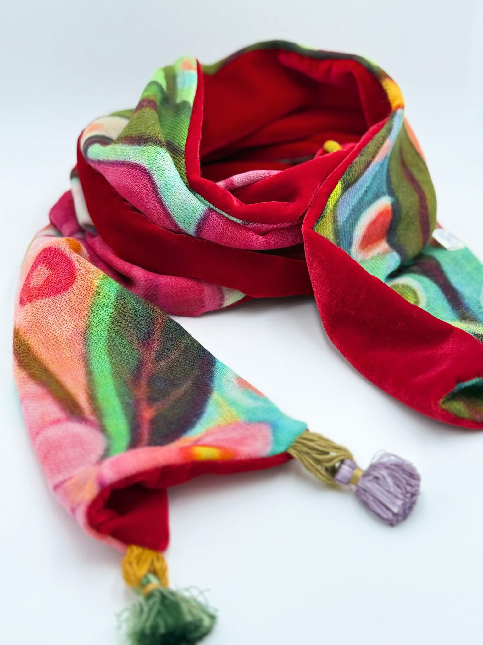 Sciarpa in velluto e lana dipinta a mano