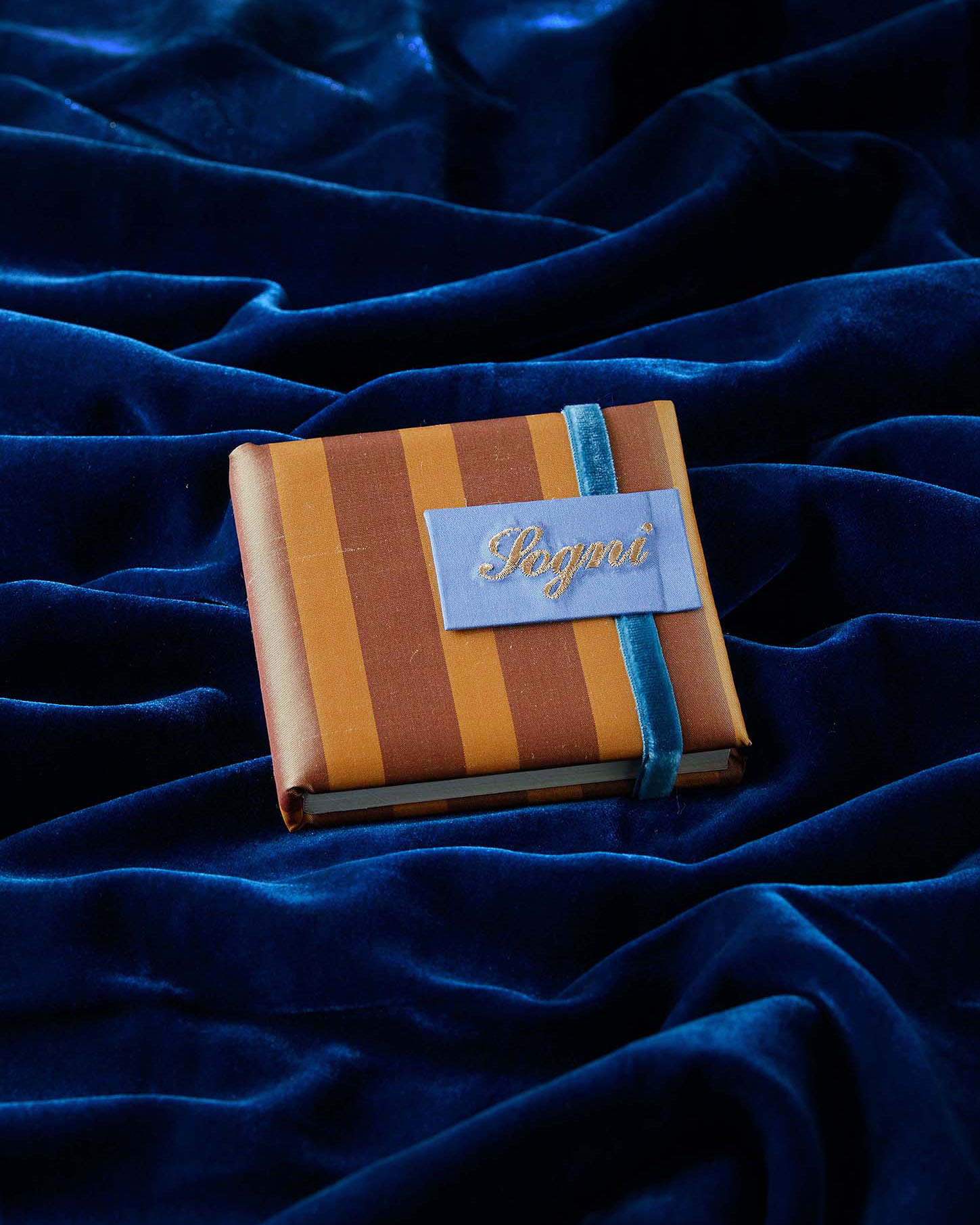 Chiusura in velluto e tassello in taffetà con ricamo oro