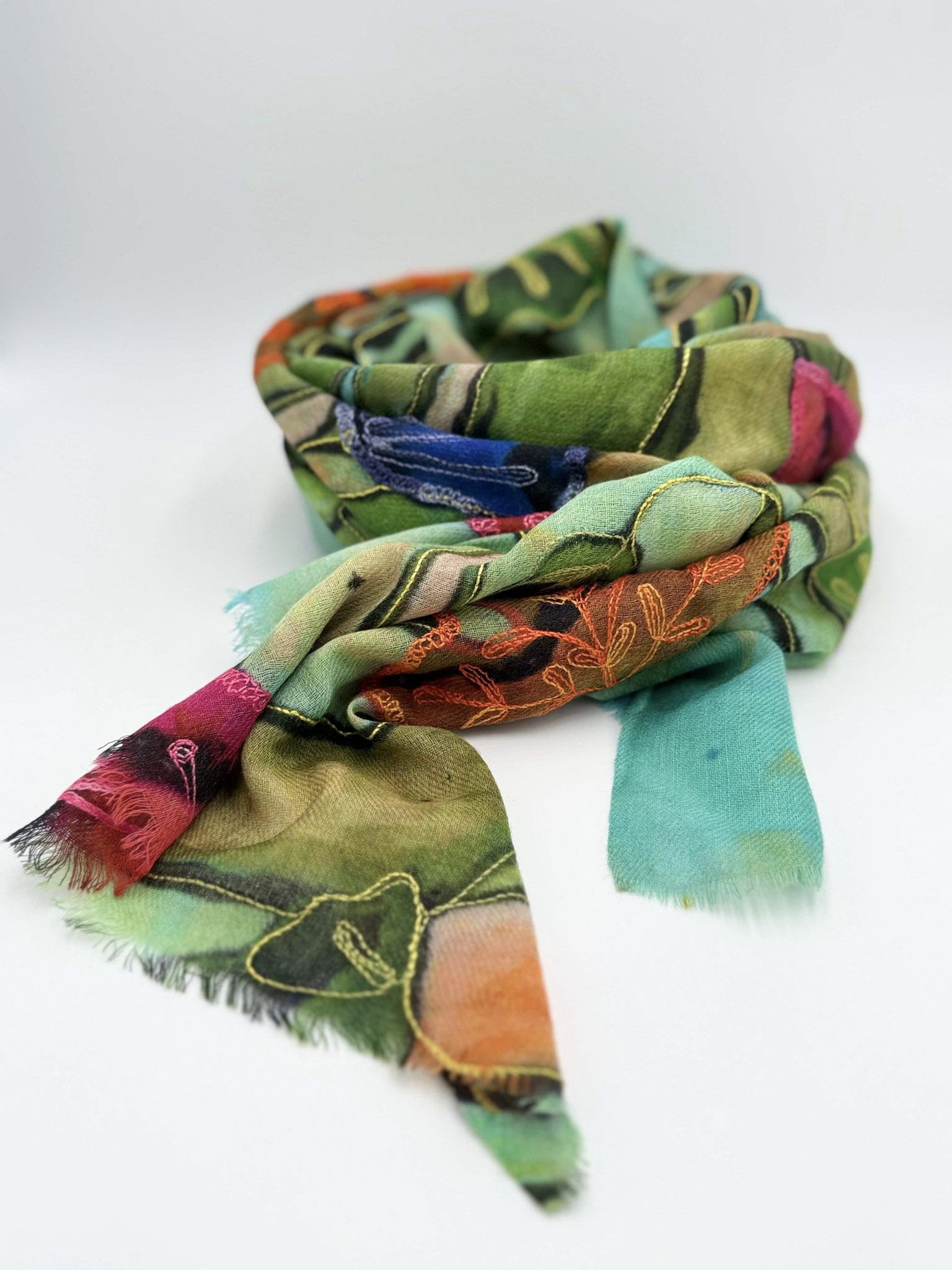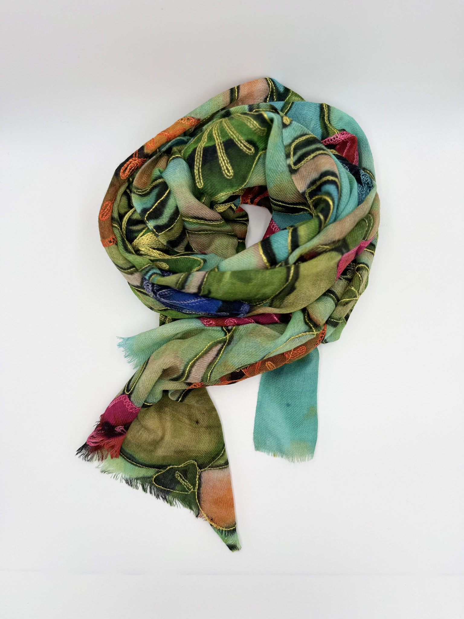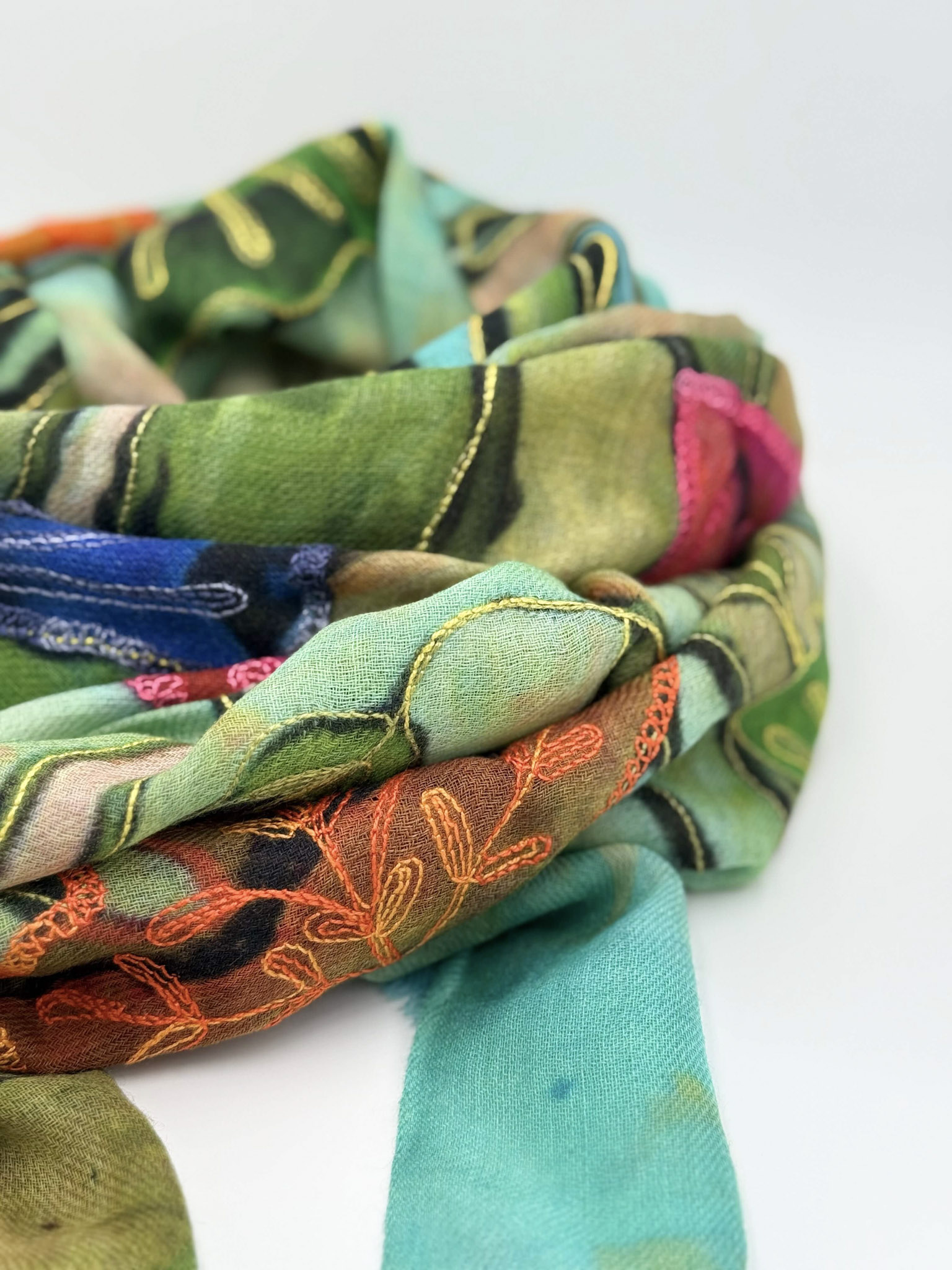 Stola in lana ricamata a mano