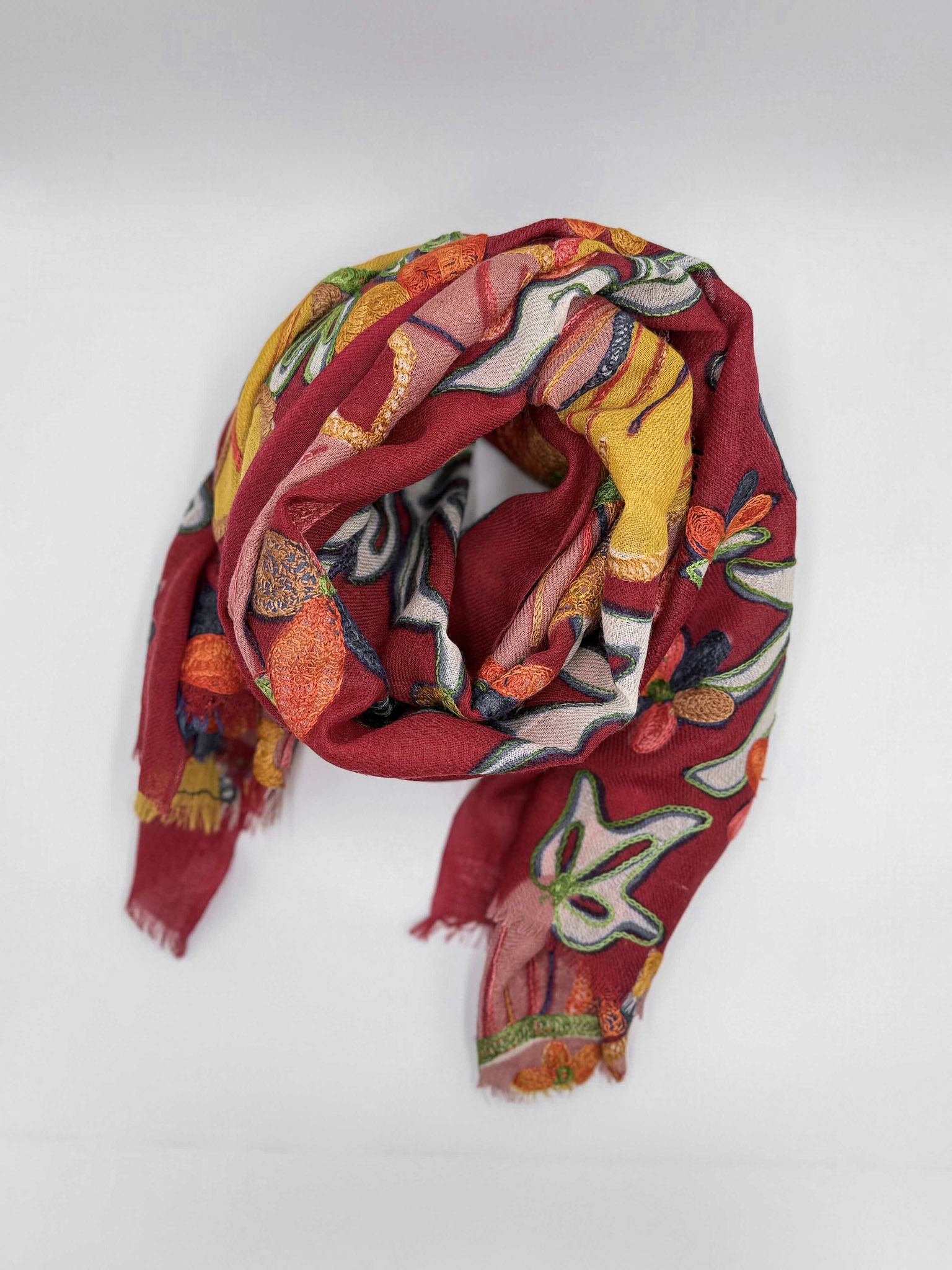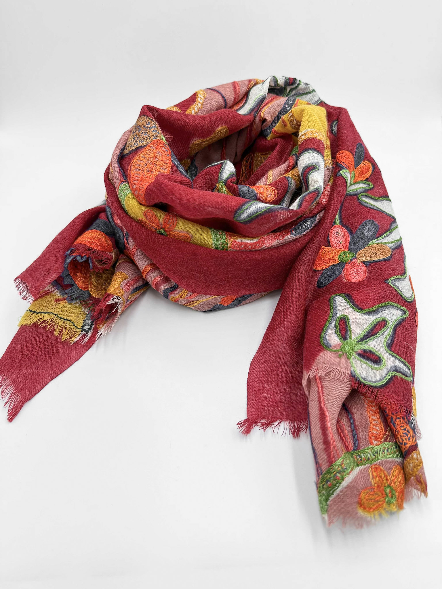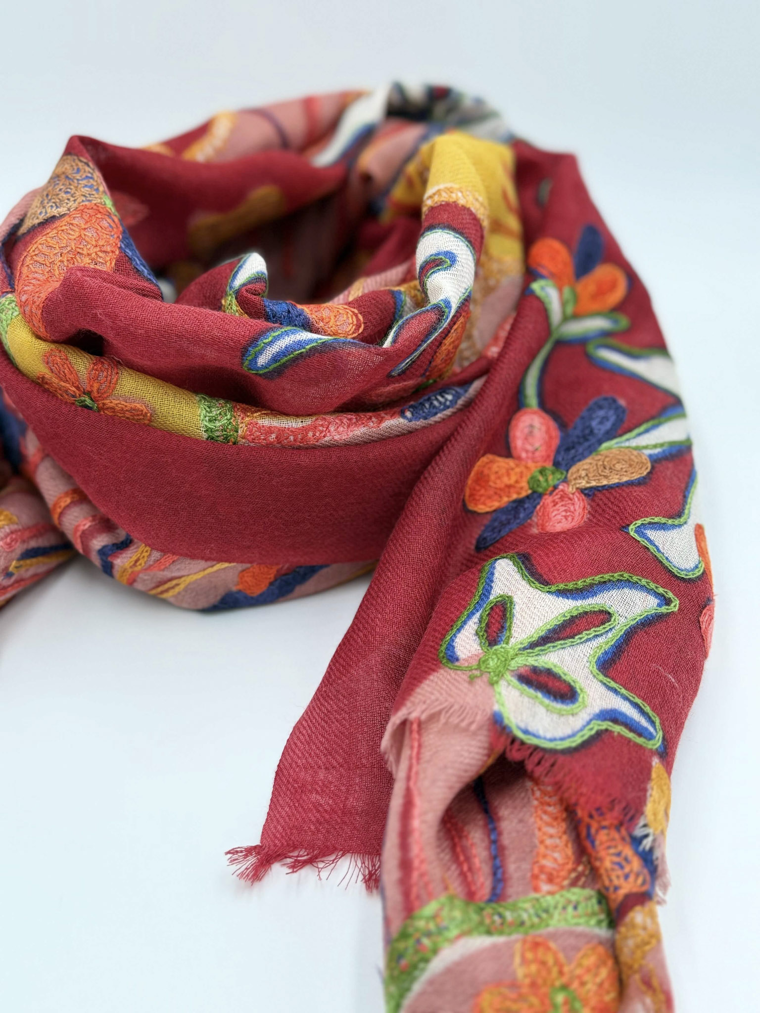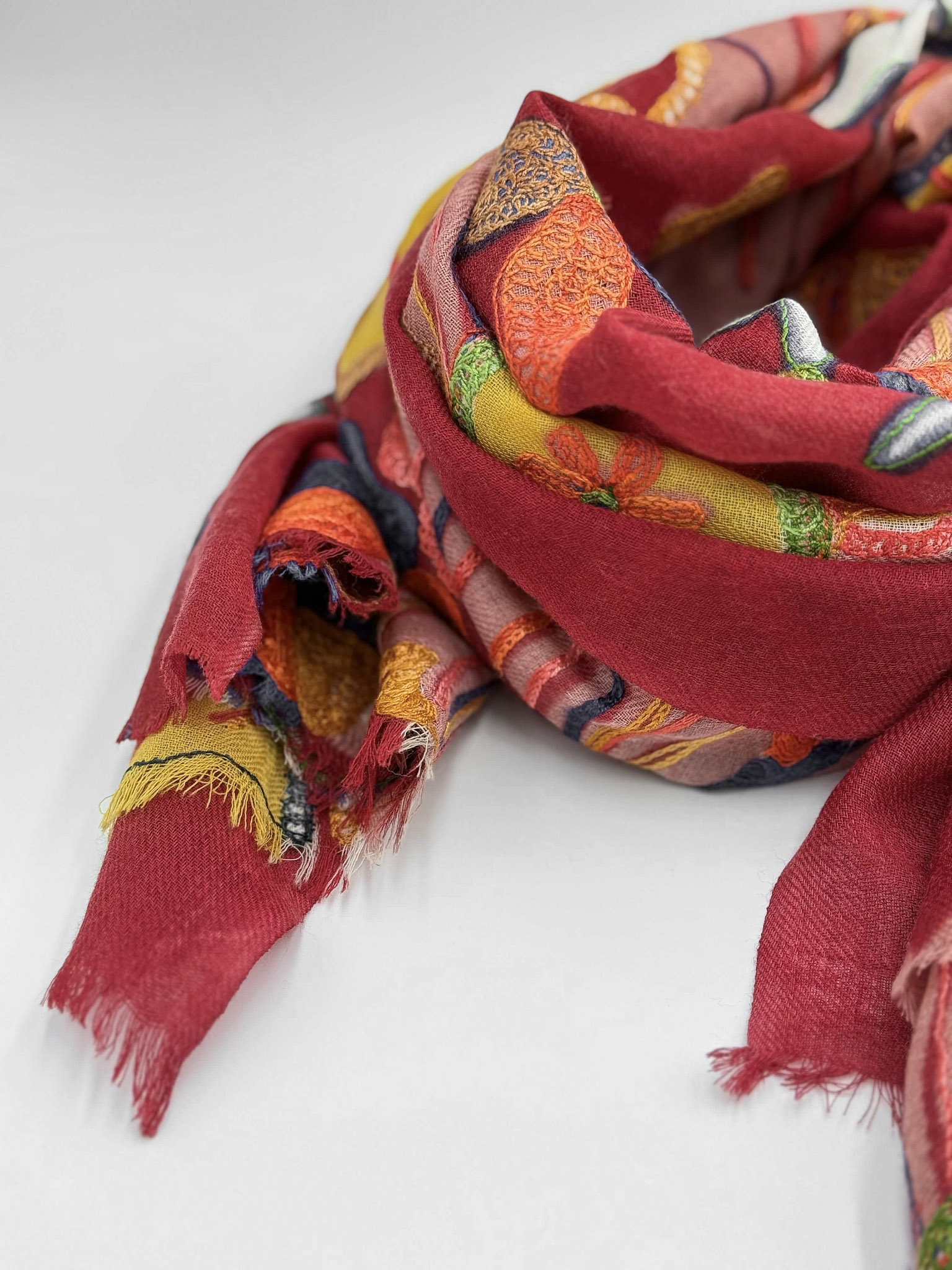 Stola in lana ricamata a mano