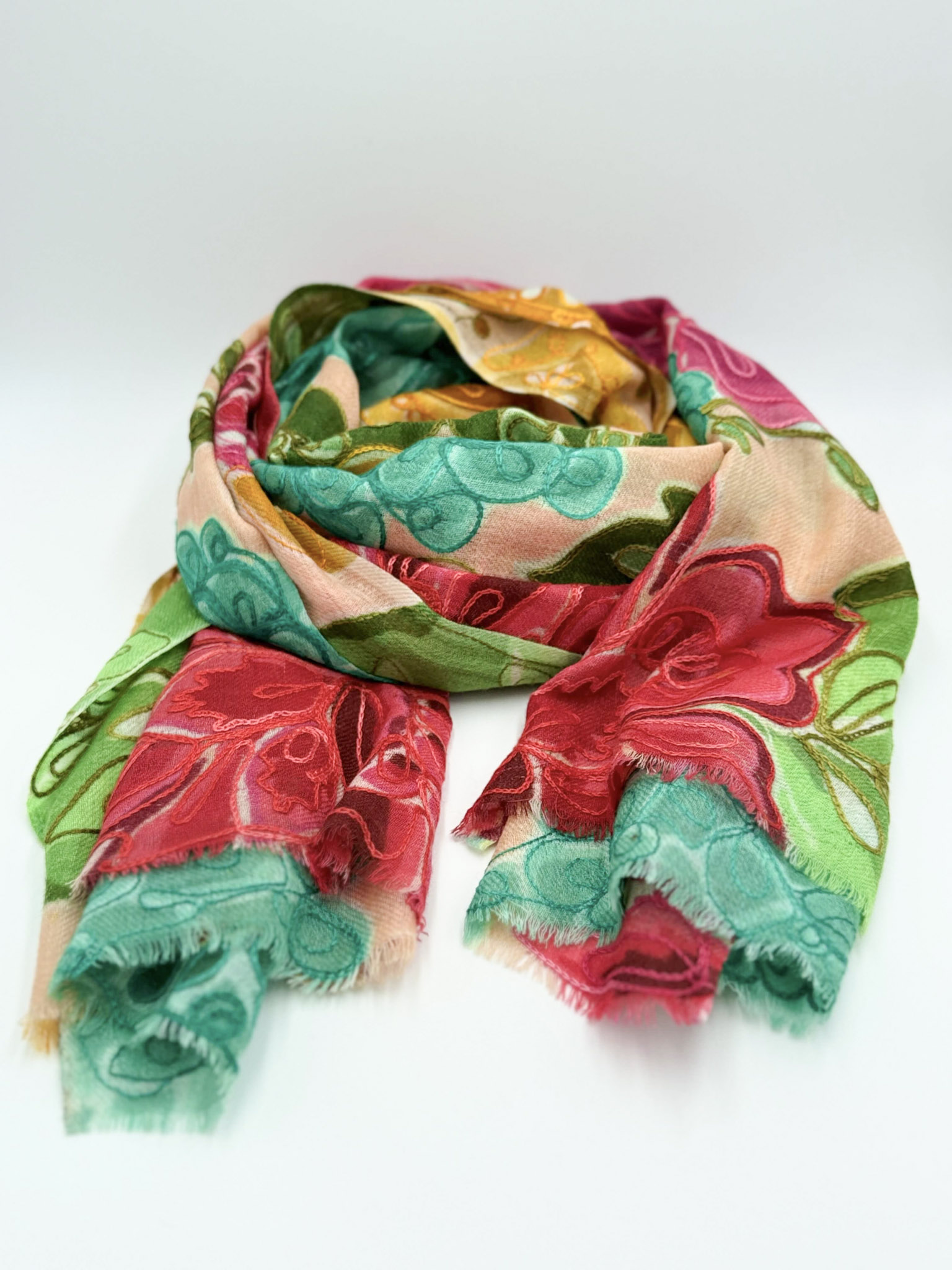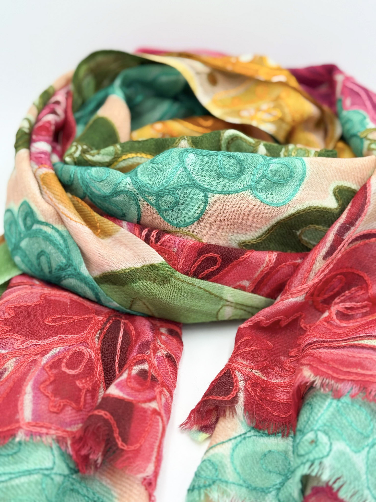 Stola in lana ricamata a mano